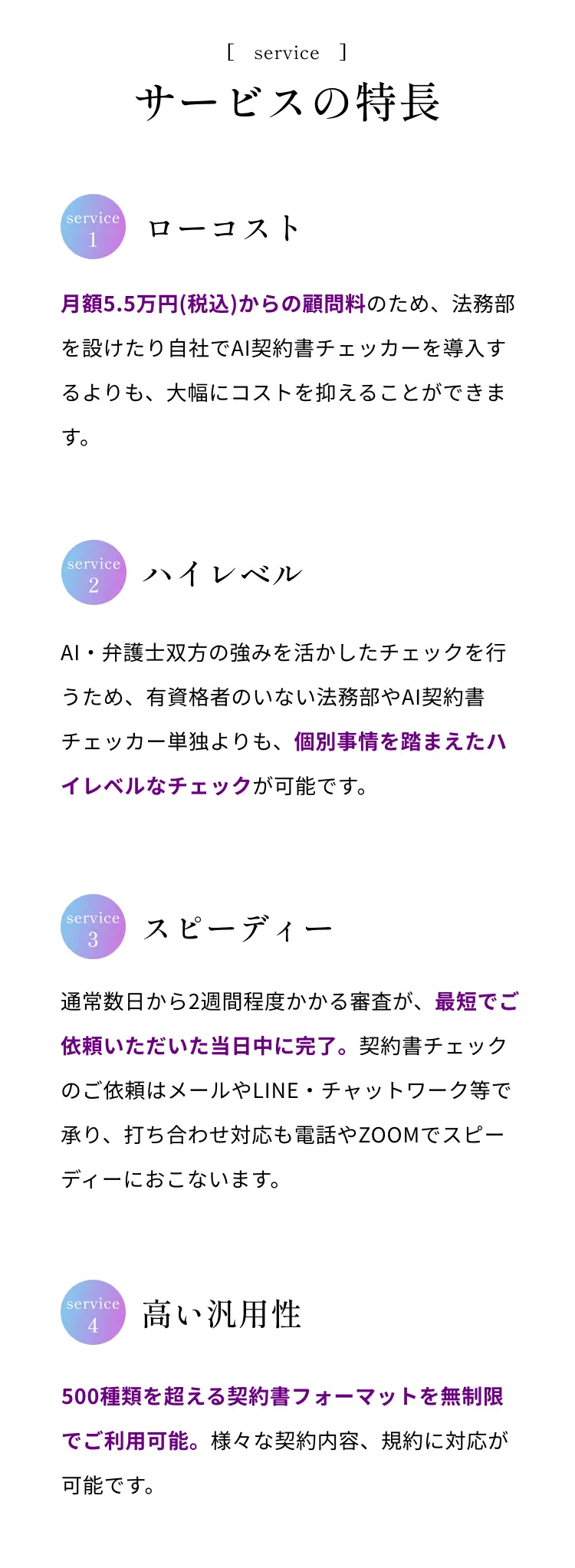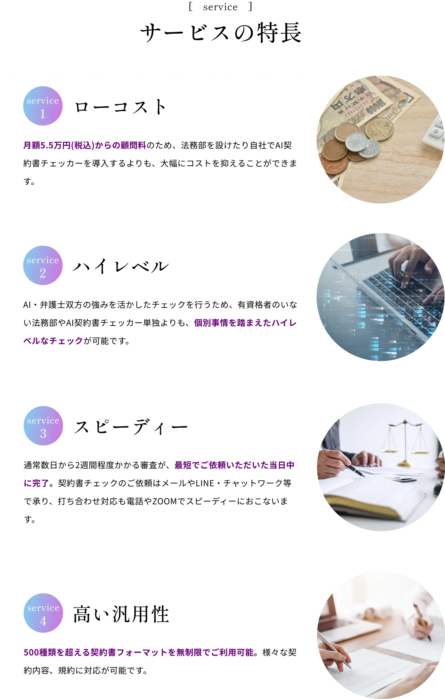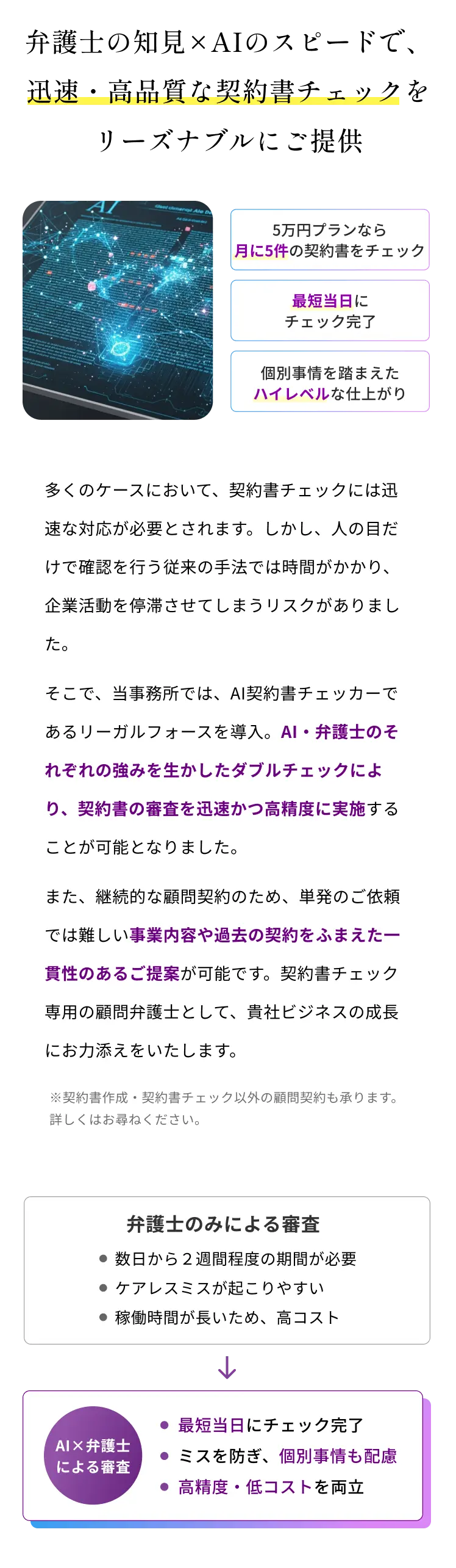 契約書フォーマットの提供 | 無制限 | 無制限 | 無制限 | 無制限 |