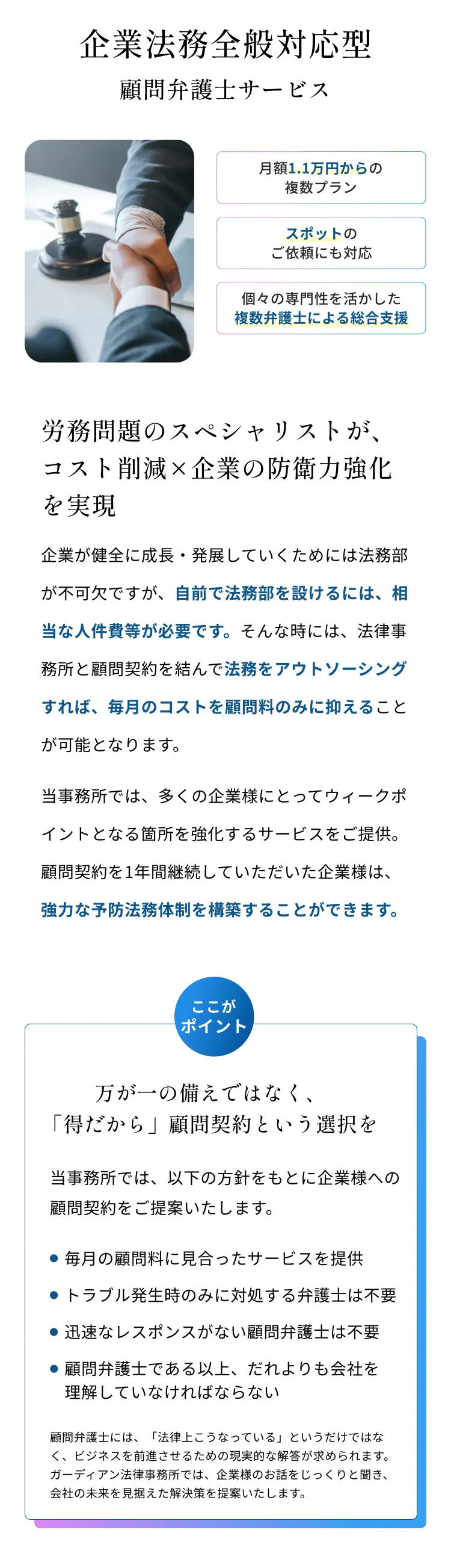 従業員からの相談 | 相談料は無料 費用は5%OFF |