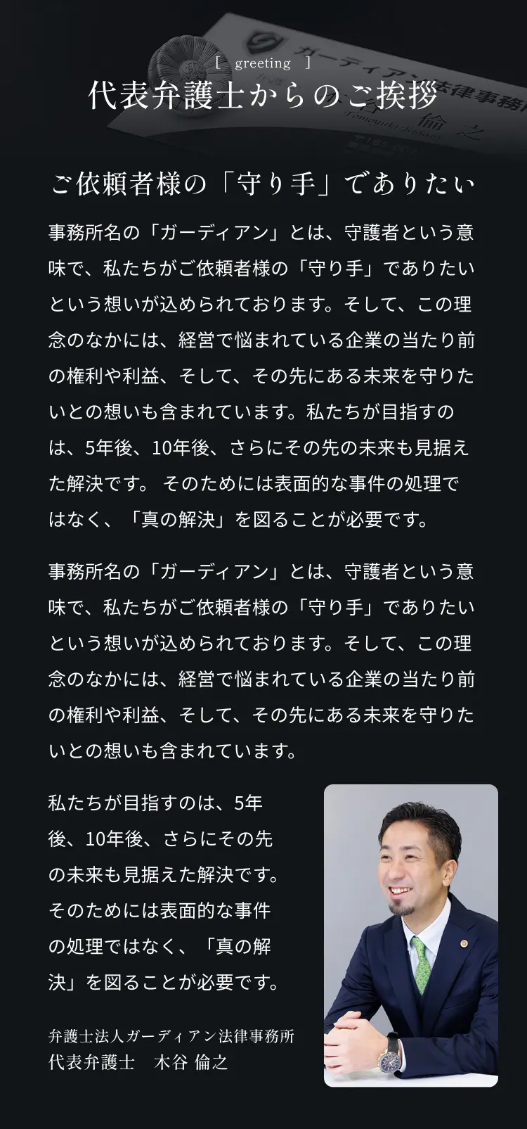 代表弁護士 木谷 倫之 (東京弁護士会 登録番号43675) |